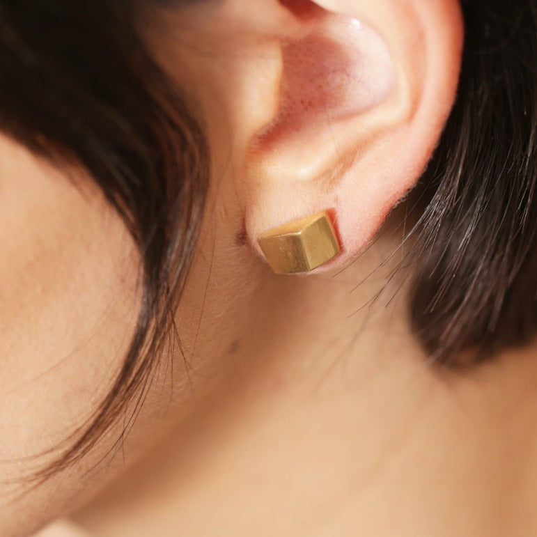 עגיל גיאומטרי בצורת מרובע, הנראה שונה מכל זוית.