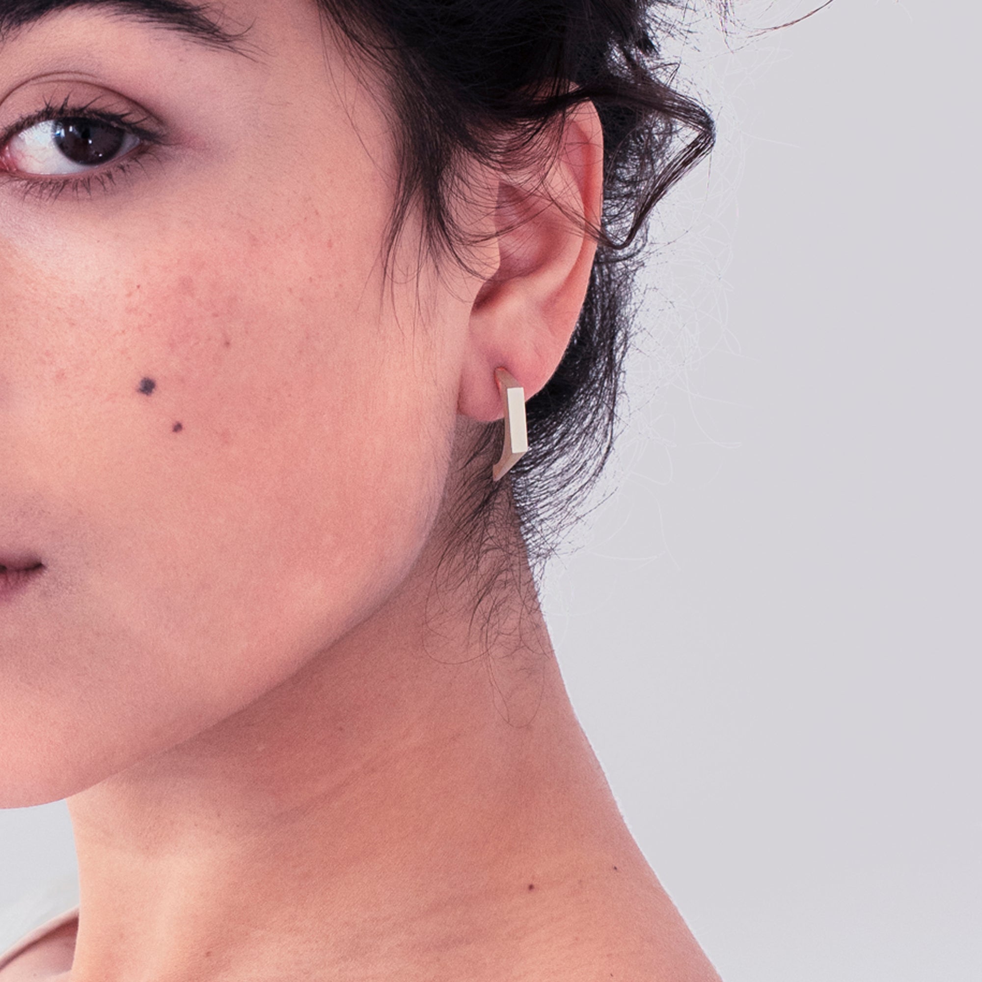 עגיל גדול במראה גיאומטרי,הפרופיל נראה שונה מכל זוית.