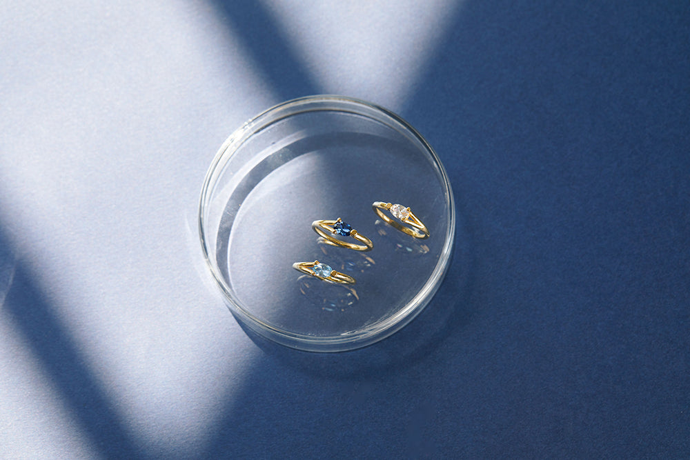 טבעת אירוסין במראה א-סימטרי שבו ה״שן״ הכי עבה ממשיכה את הקו והופכת להיות הטבעת עצמה