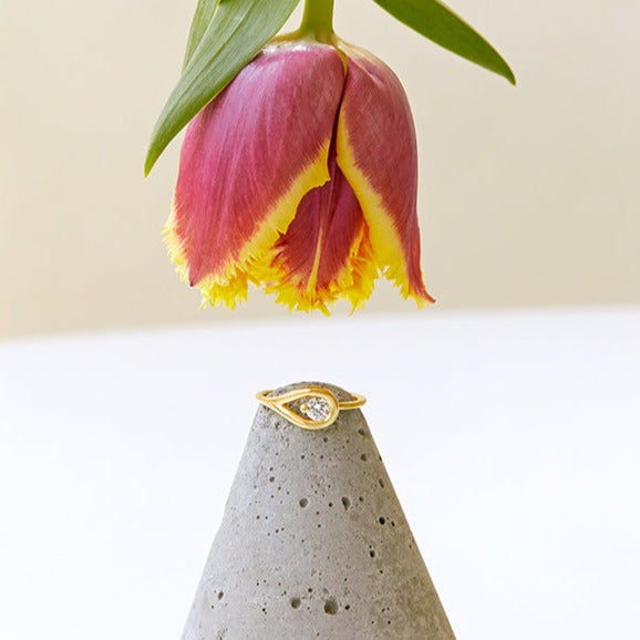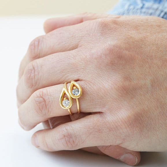 טבעת אירוסין במראה טיפה, עגולה ועל זמנית