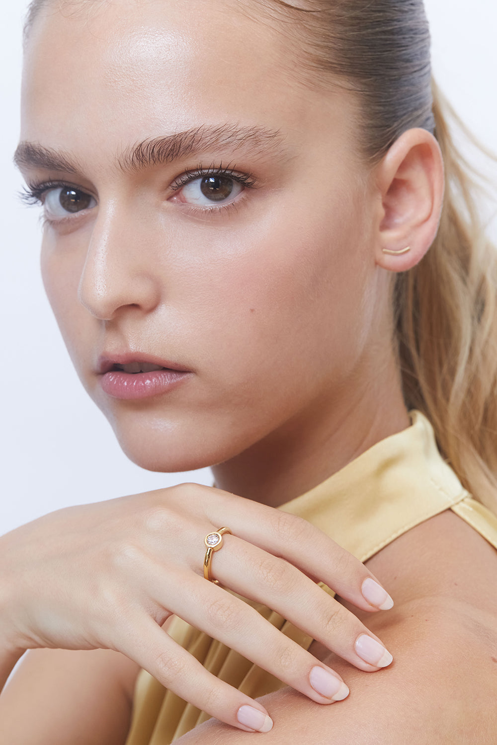 טבעת אירוסין עם יהלום לבן מרכזי. טבעת אלגנטית המעוצבת בקפידה בעבודת יד.
