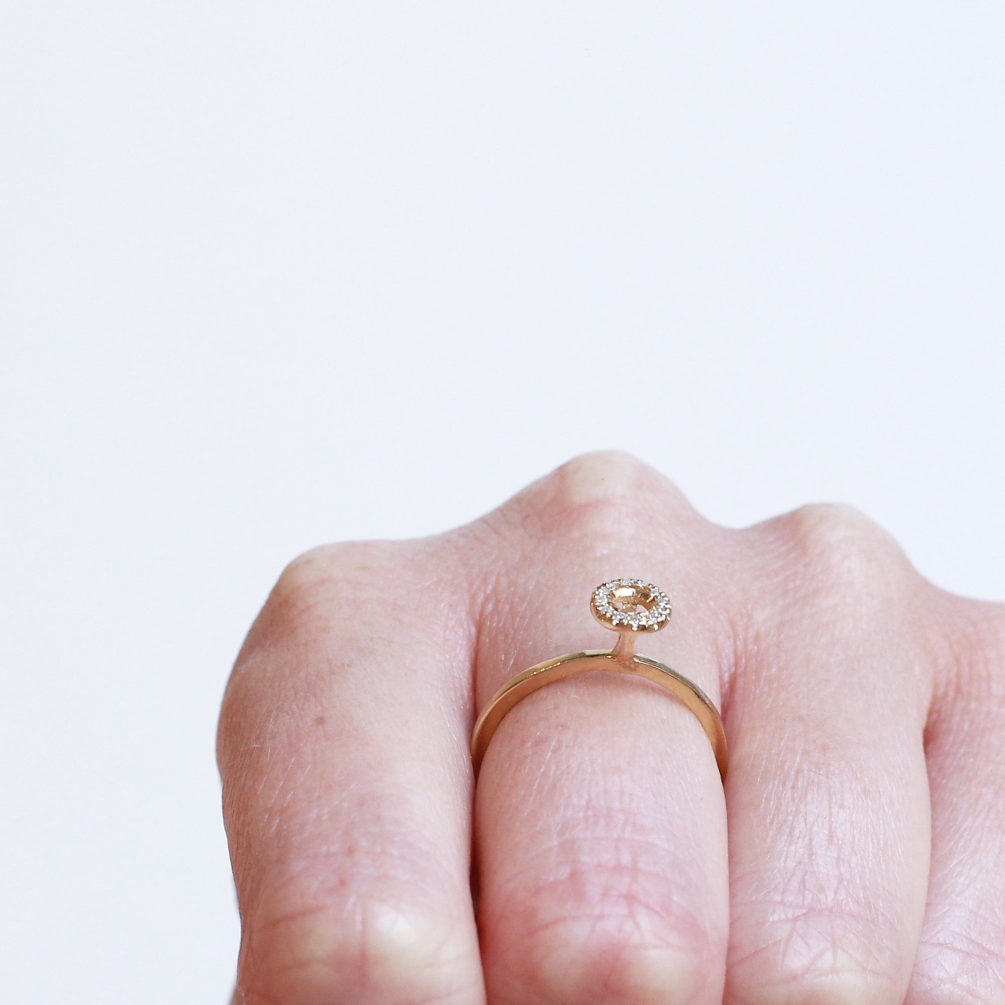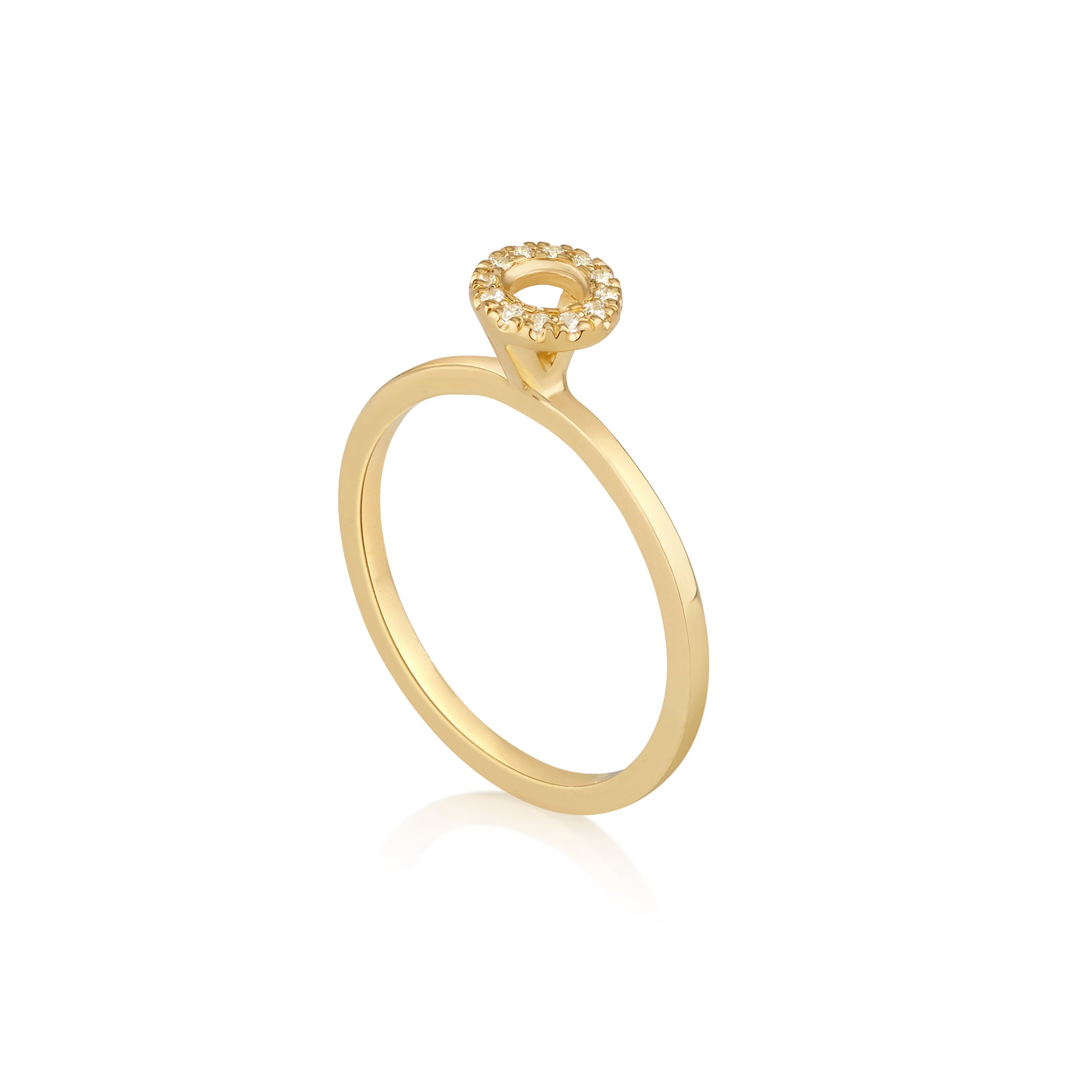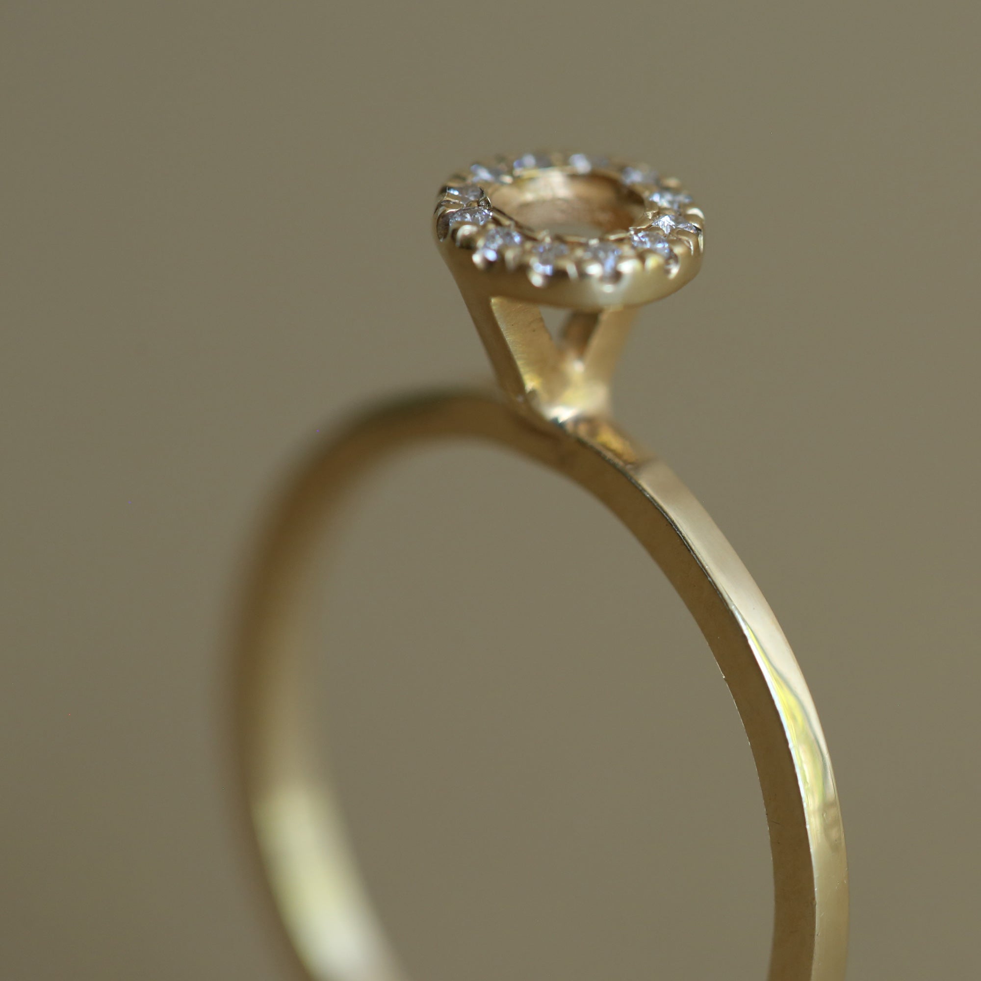 טבעת אירוסין עם סלסלת יהלומים לבנים מרחפים הממוקמים בדיוק בראש הקונוס. טבעת אלגנטית המעוצבת בקפידה בעבודת יד.