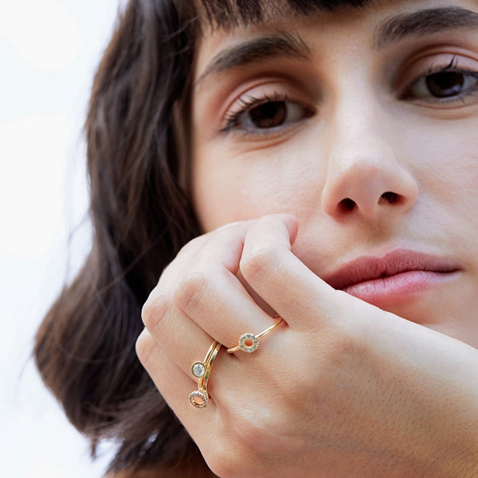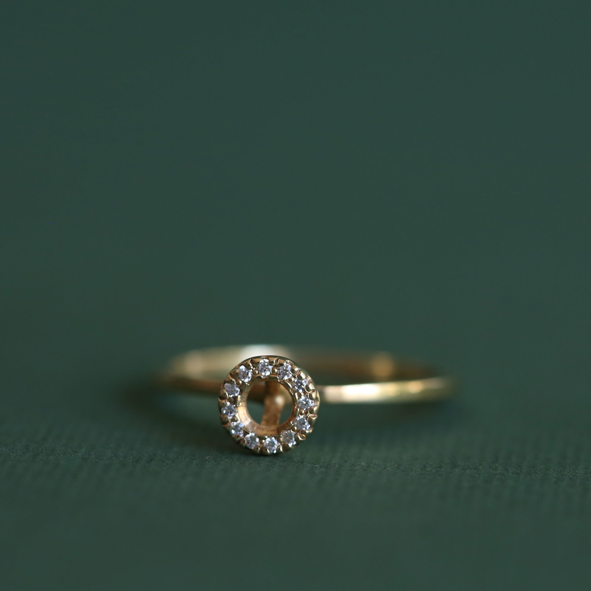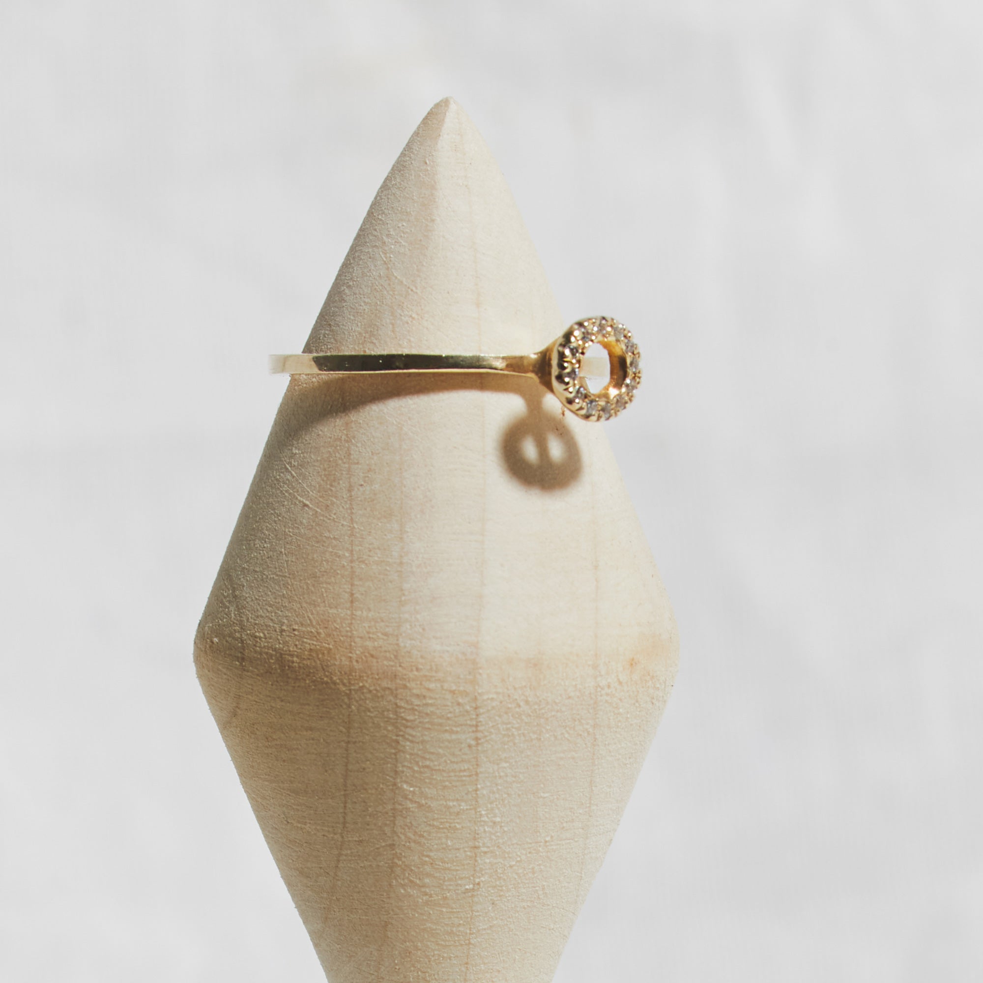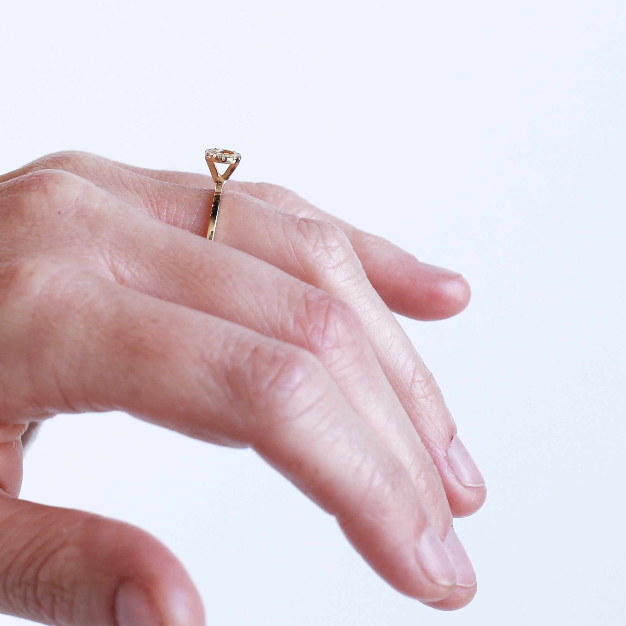 טבעת אירוסין עם סלסלת יהלומים לבנים מרחפים הממוקמים בדיוק בראש הקונוס. טבעת אלגנטית המעוצבת בקפידה בעבודת יד.