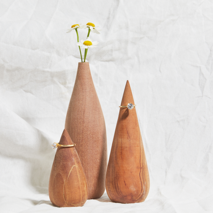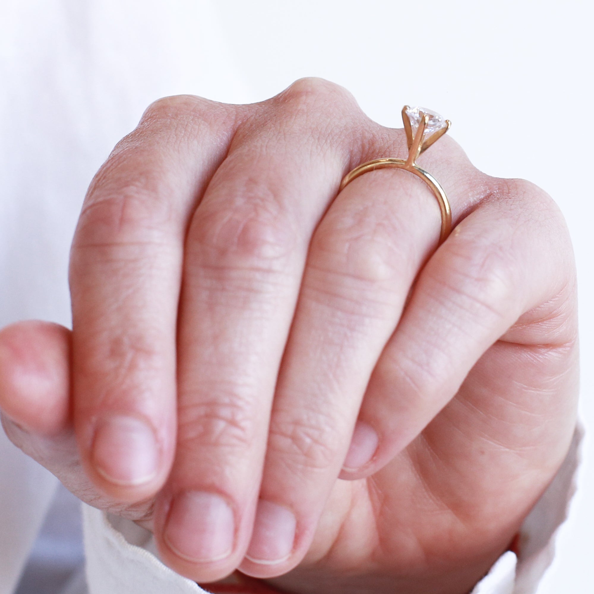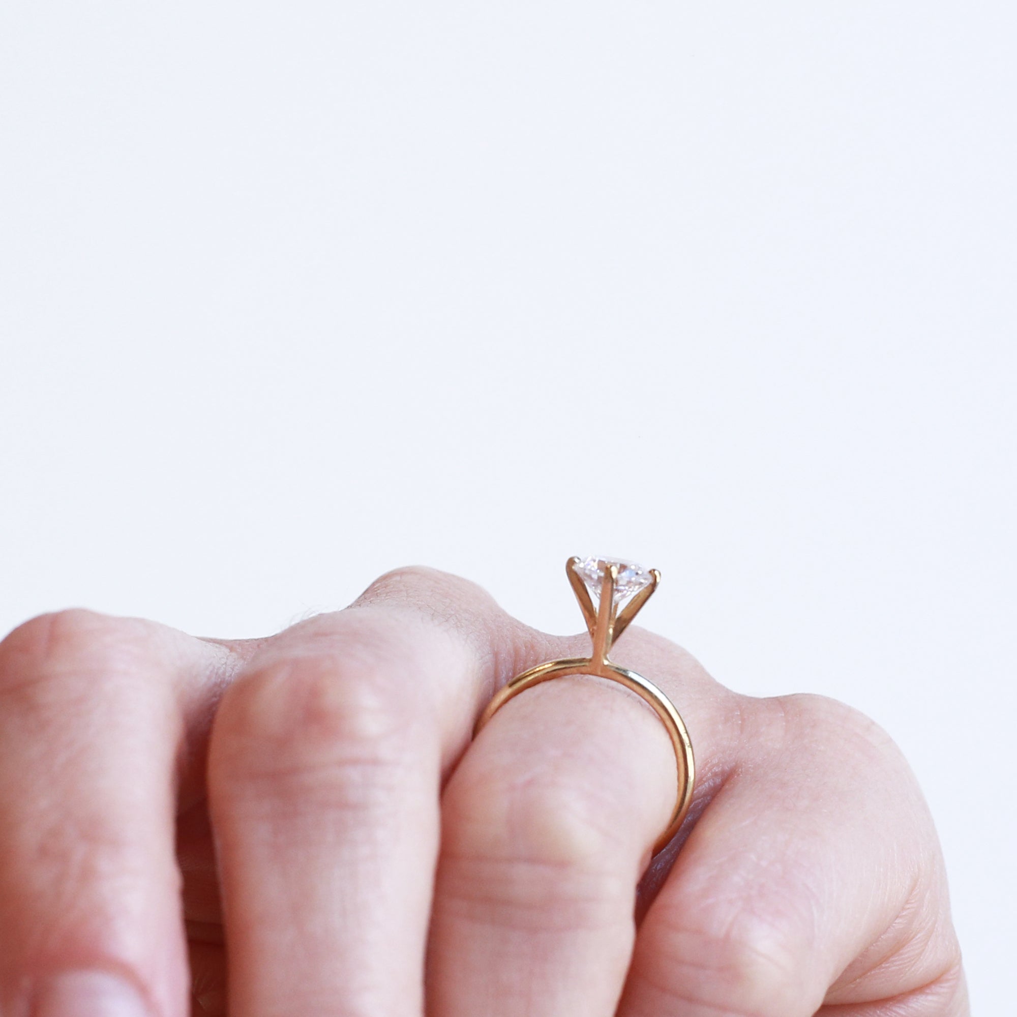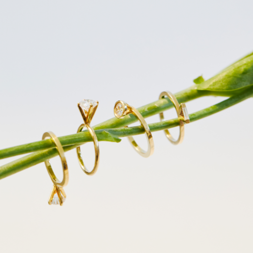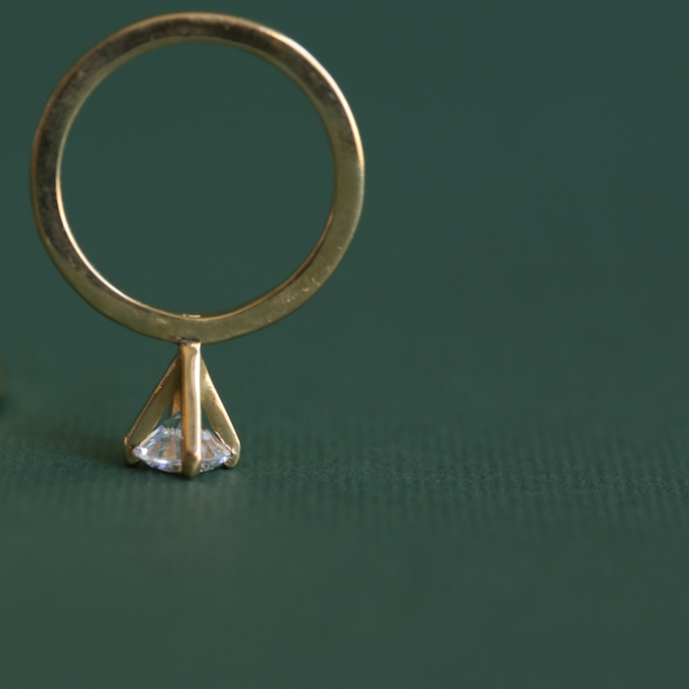 טבעת אירוסין גיאומטרית בצורת עץ עם יהלום מרחף המונח בין ענפי העץ. טבעת ייחודית ואלגנטית מעוצבת בקפידה בעבודת יד.