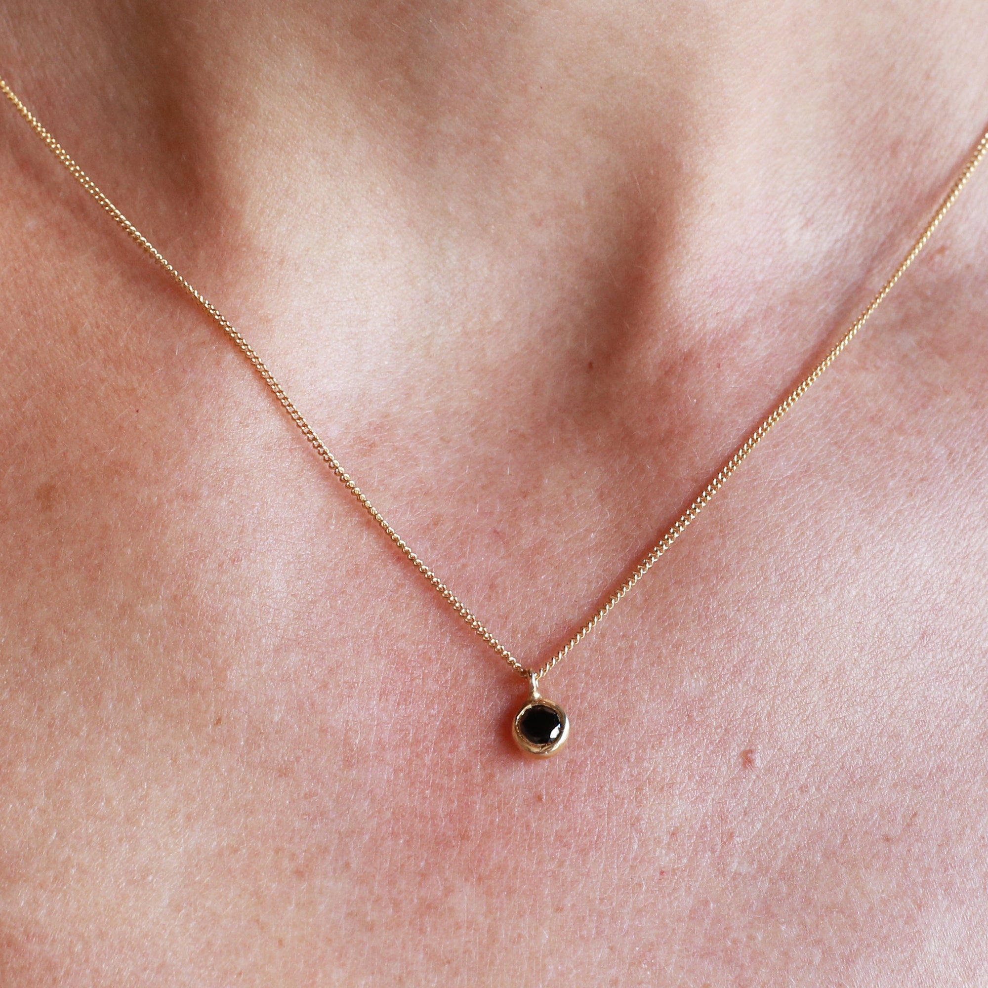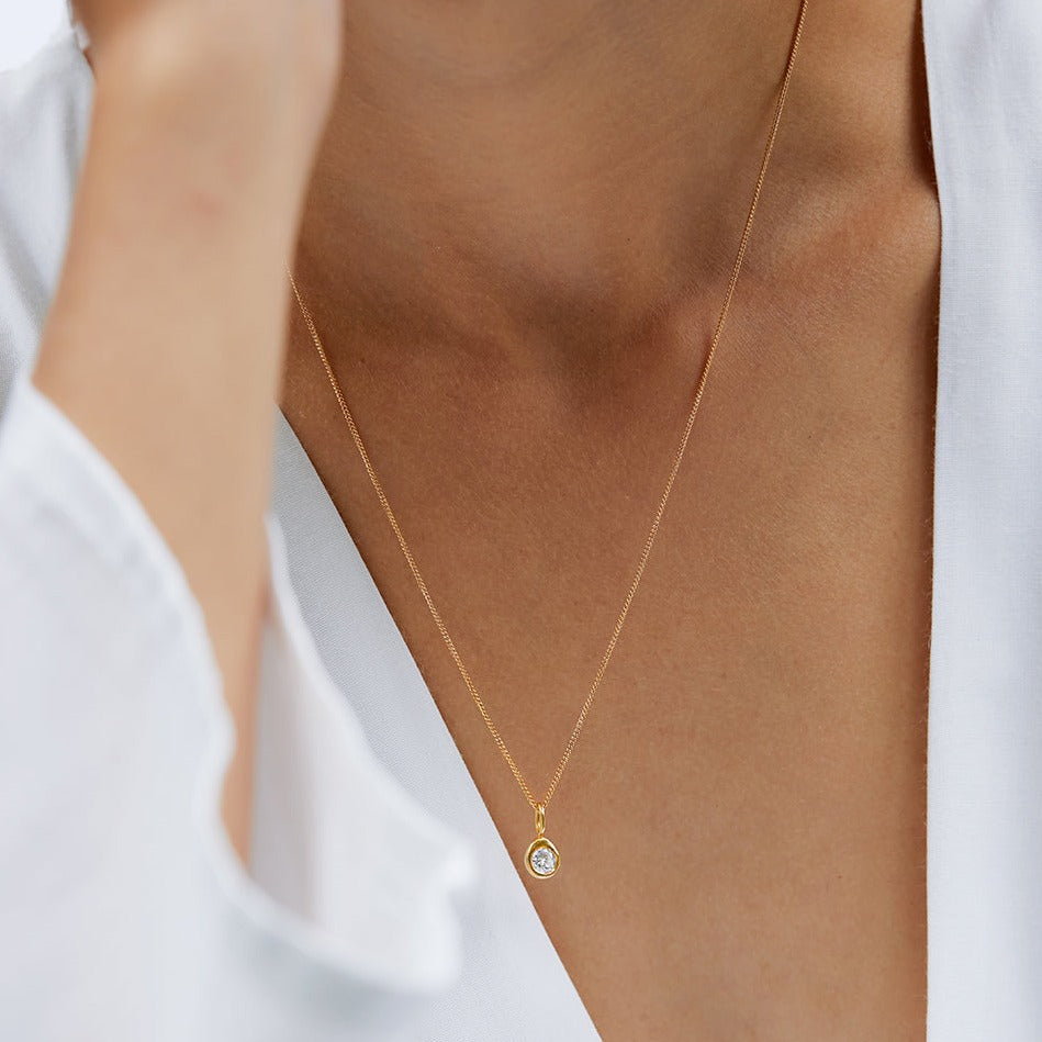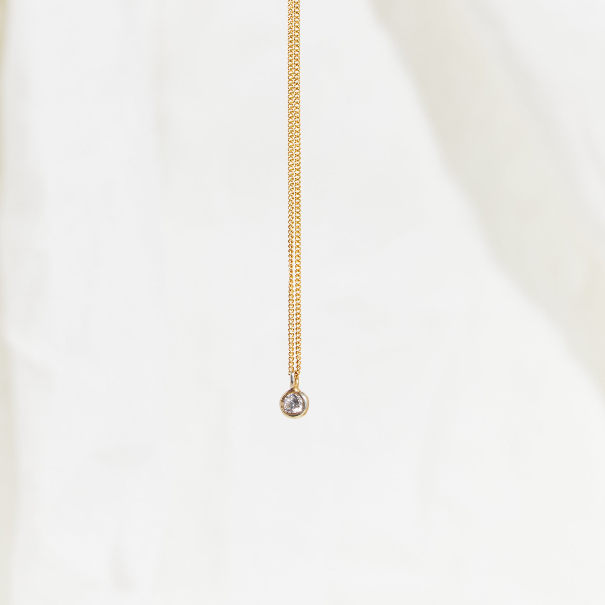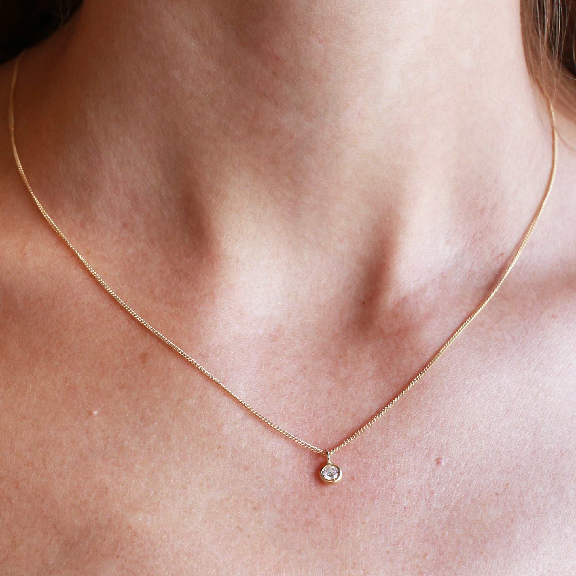 שרשרת זהב עם יהלום לבן מרכזי עגול. שרשרת מינימליסטית ואלגנטית מעוצבת בקפידה בעבודת יד.