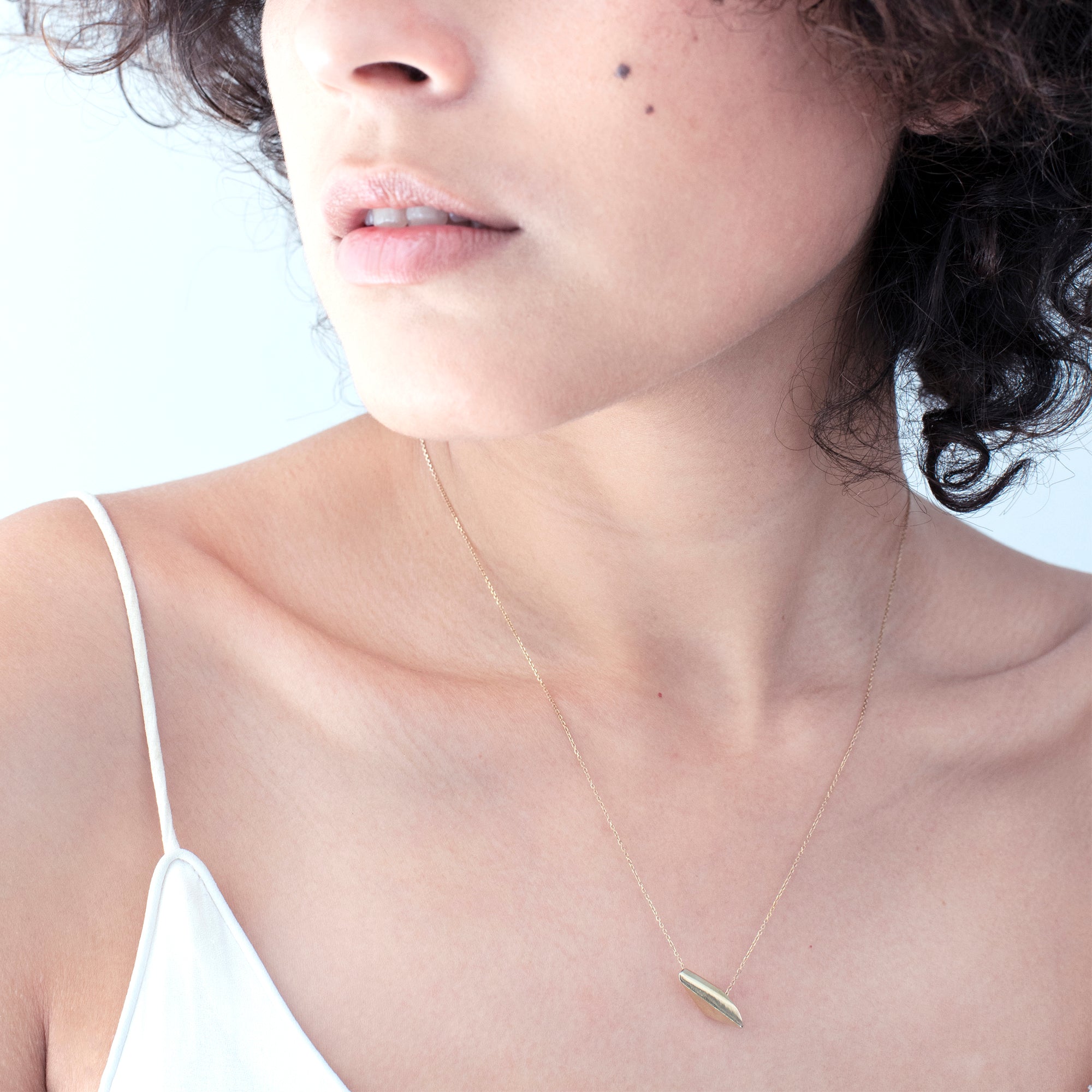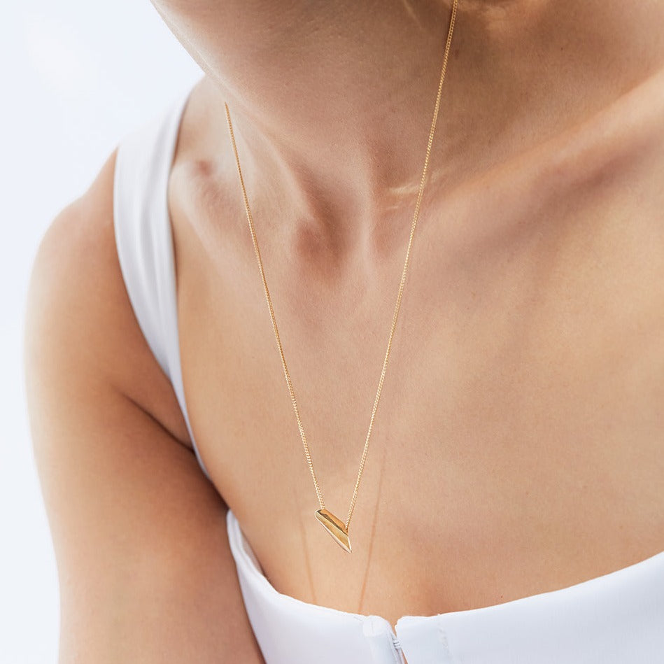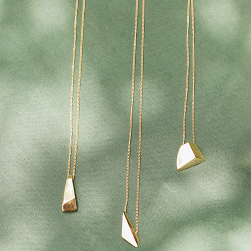 שרשרת זהב או כסף עם תליון גיאומטרי בצורת טרפז. שרשרת ייחודית מינימליסטית, מעוצבת בקפידה בעבודת יד.