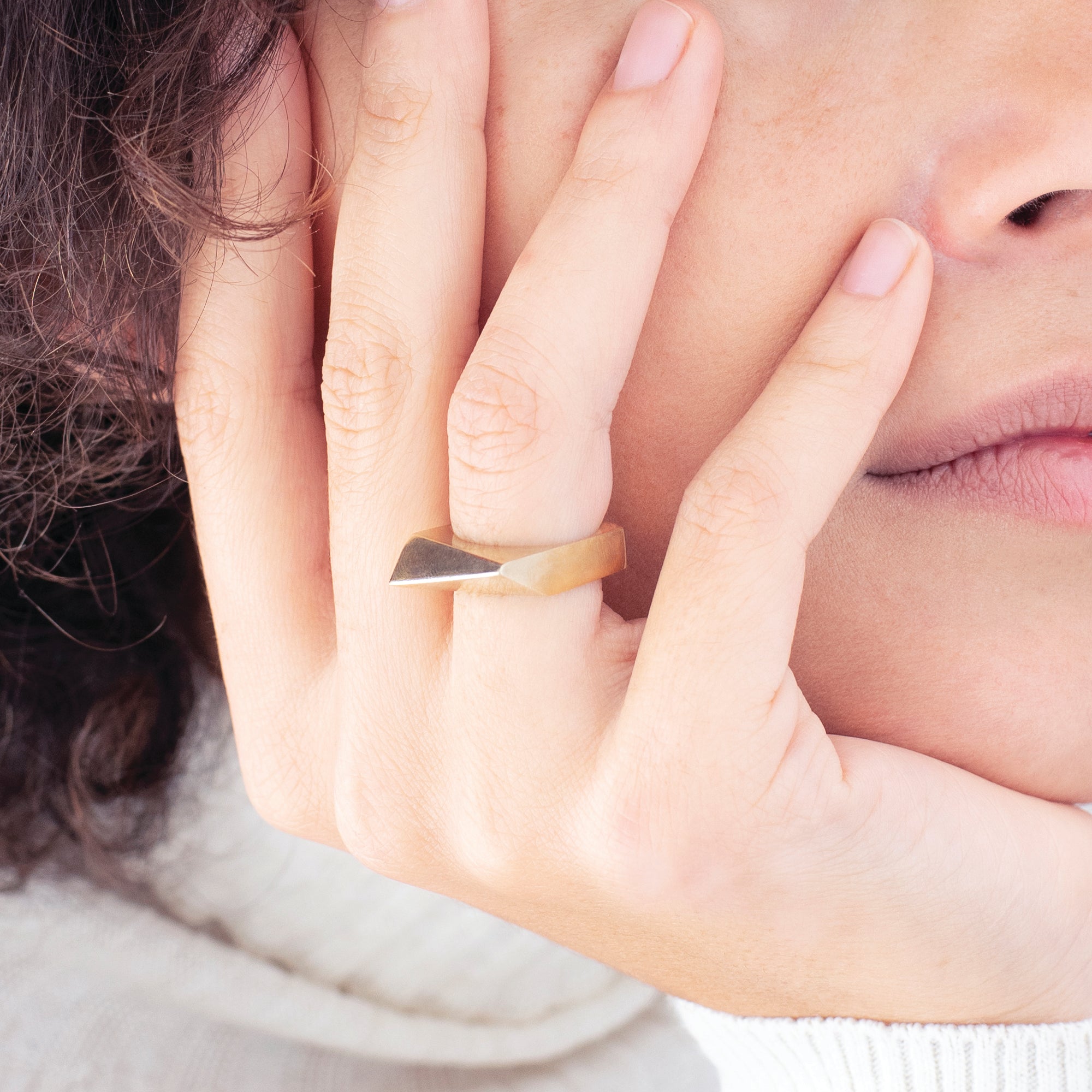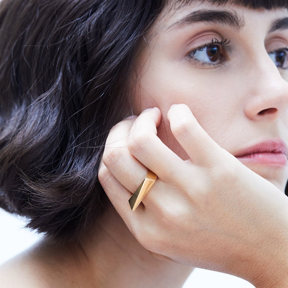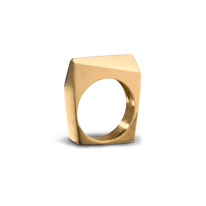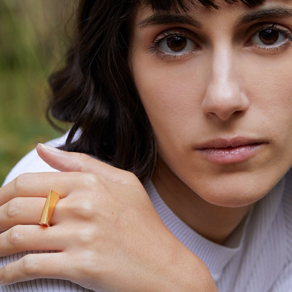 טבעת אלכסונית גאומטרית עם נוכחות, מרשימה ובולטת. מעוצבת בקפידה בעבודת יד.