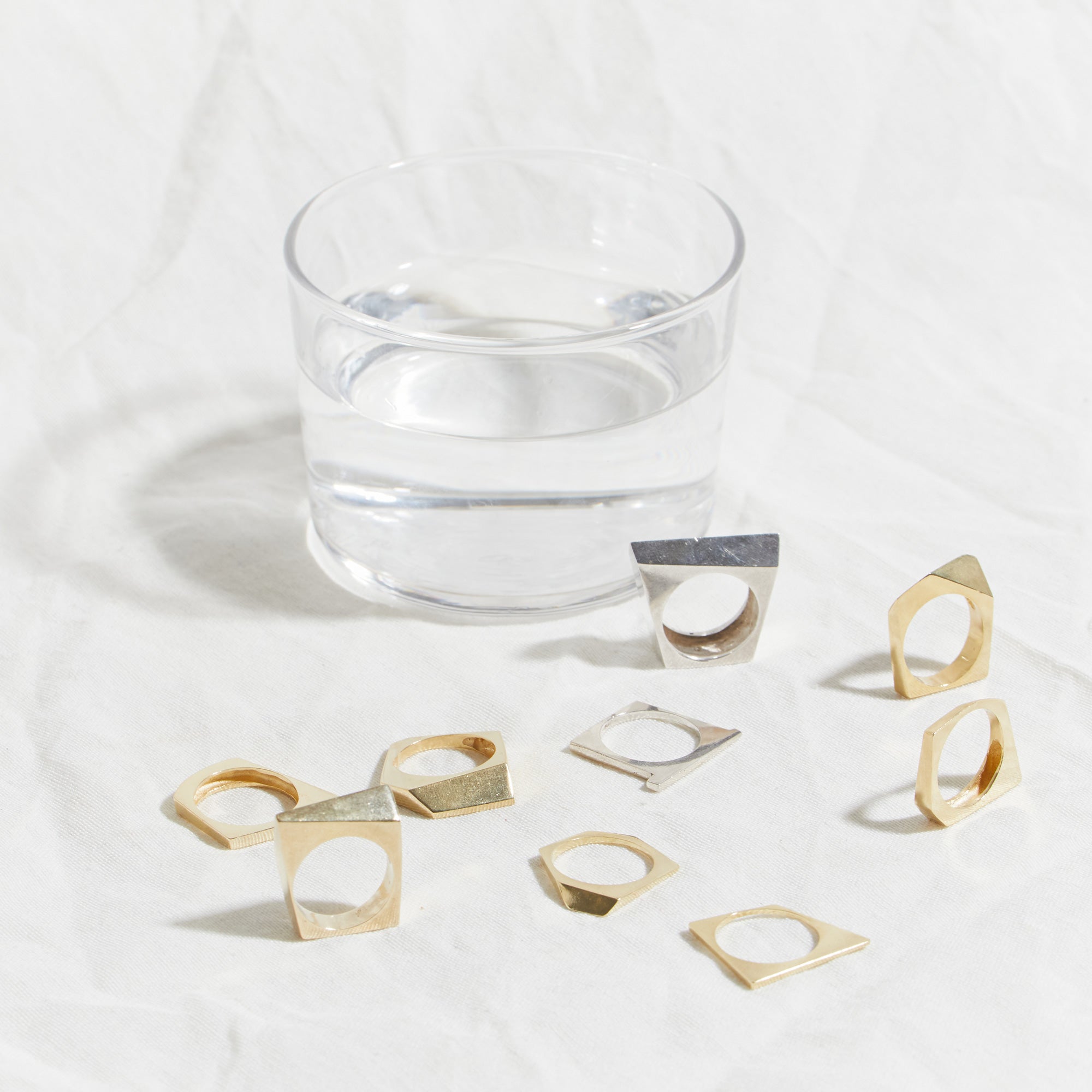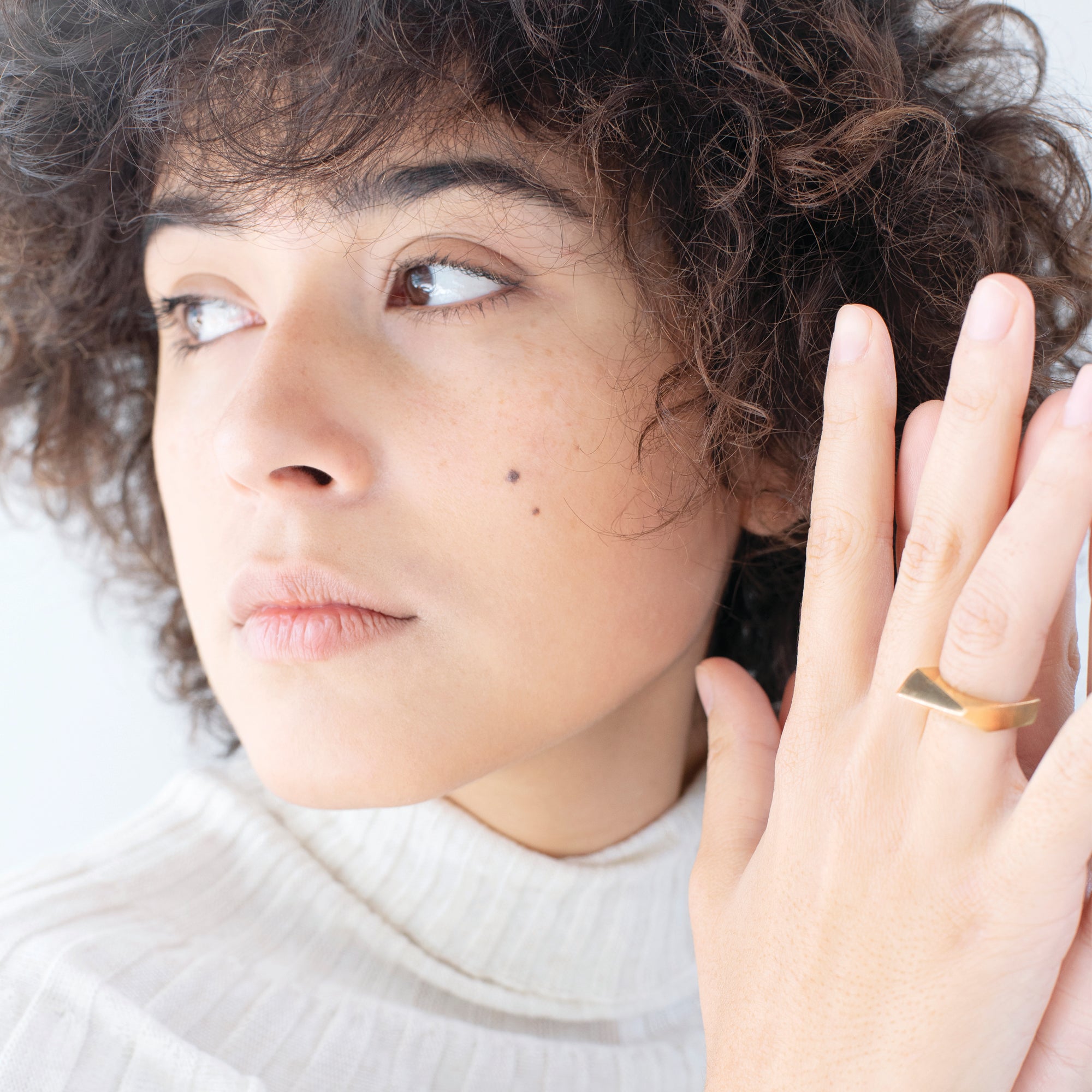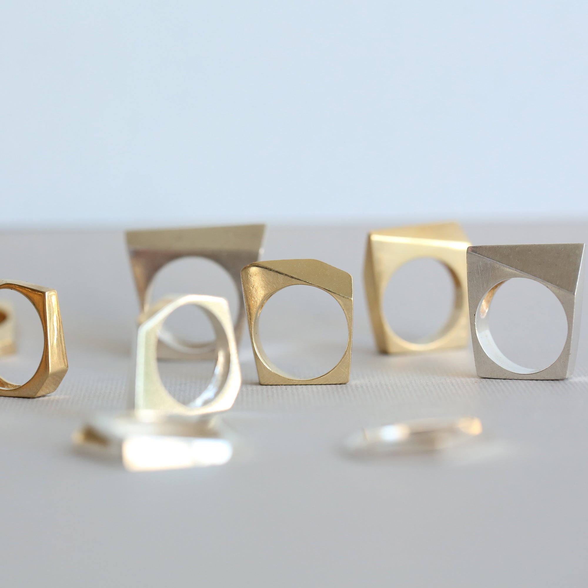 טבעת אלכסונית גאומטרית עם נוכחות, מרשימה ובולטת. מעוצבת בקפידה בעבודת יד.