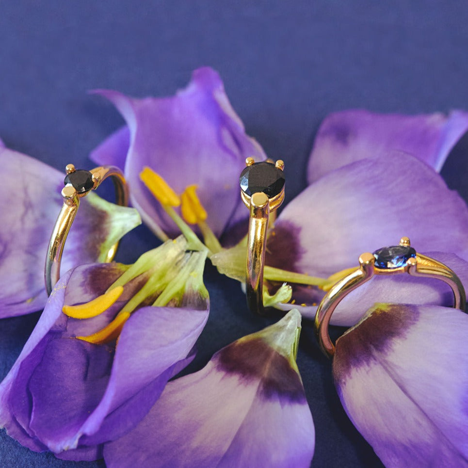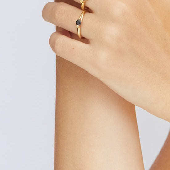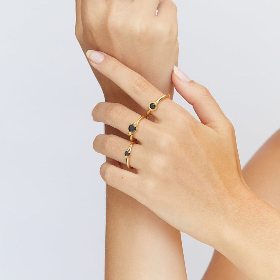 טבעת טריו עגול מדיום, יהלום שחור מעבדה 0.40 קראט
