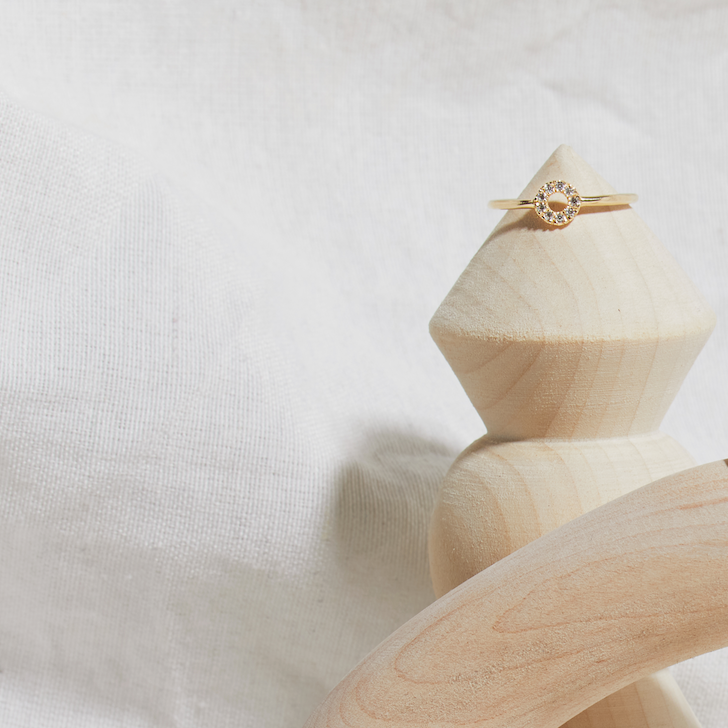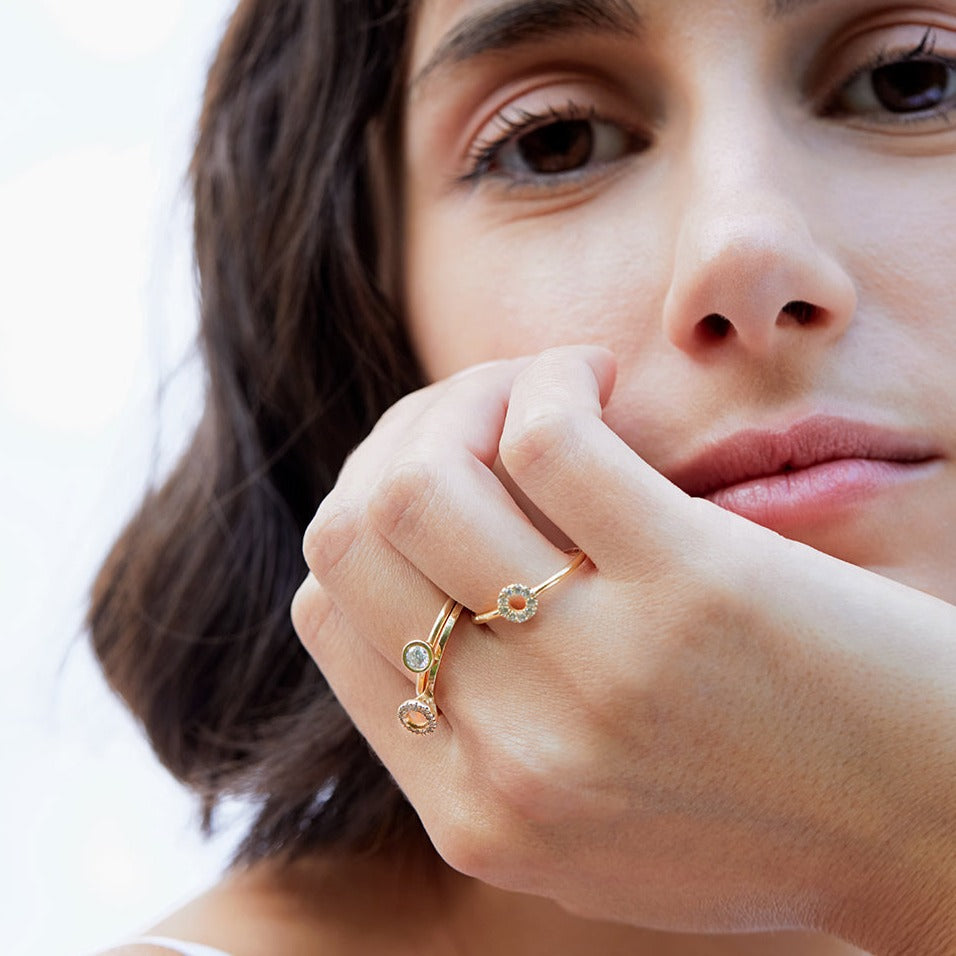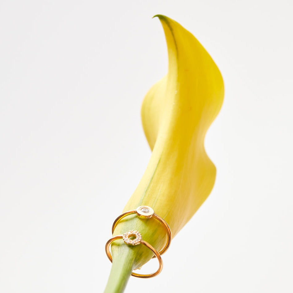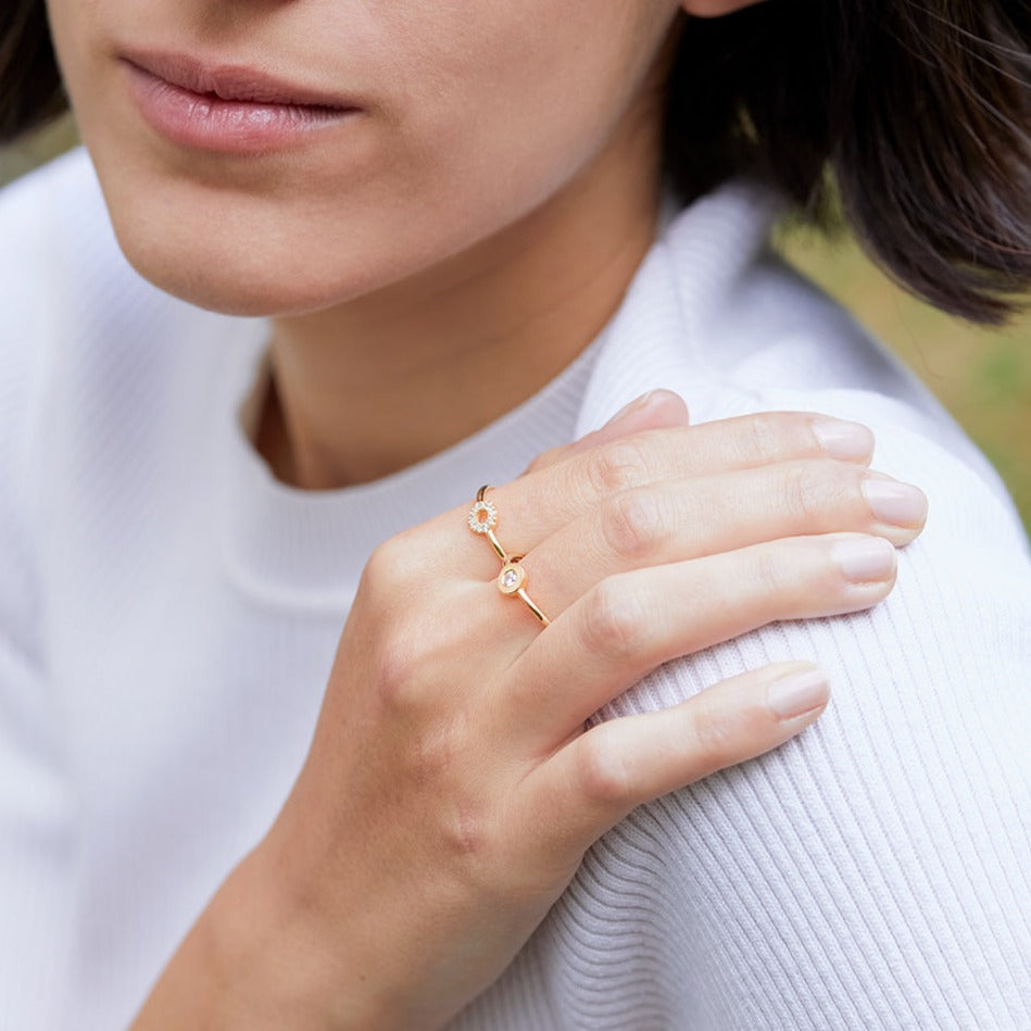 טבעת אירוסין עם סלסלת יהלומים לבנים מרחפים הממוקמים בדיוק בראש הקונוס. טבעת אלגנטית המעוצבת בקפידה בעבודת יד.